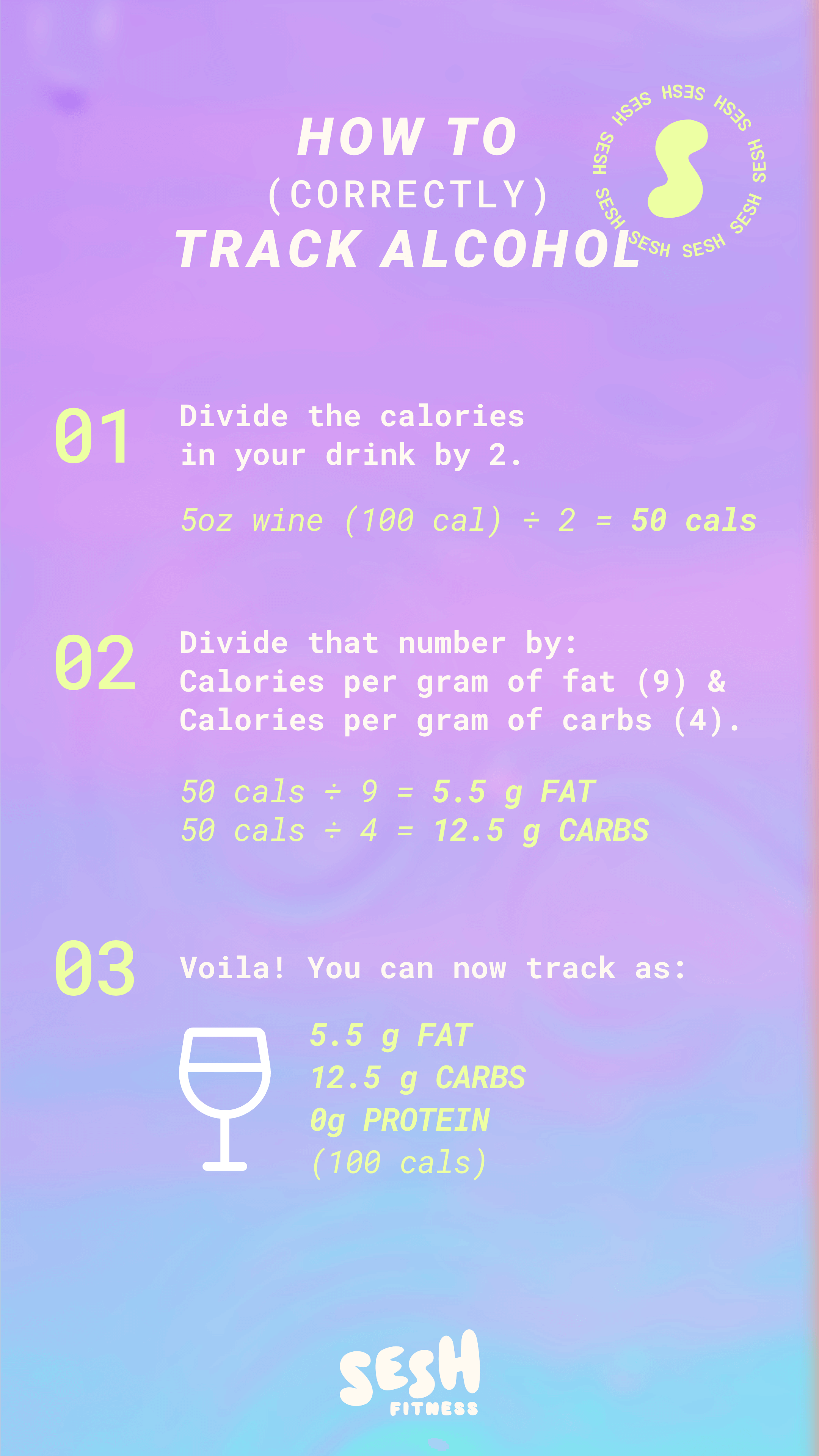 1️⃣ Find the calories in your drink (Ex: 5oz wine = 105 cals)